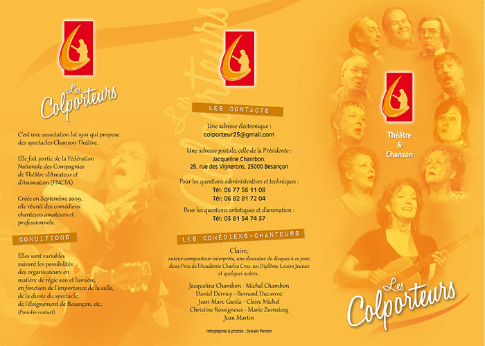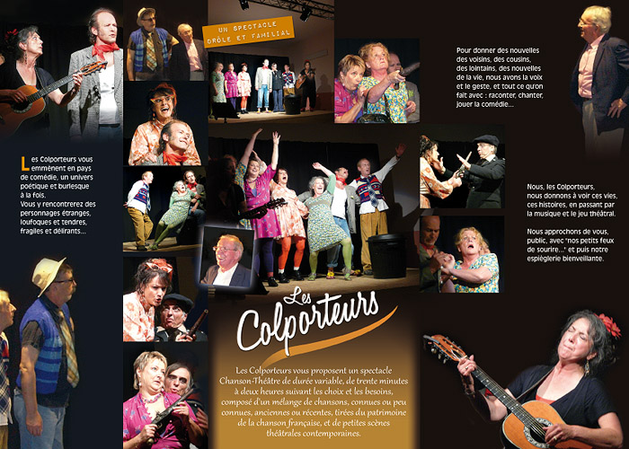Les Colporteurs vous proposent un spectacle Chanson-Théâtre de durée variable, de trente minutes à deux heures suivant les choix et les besoins, composé d'un mélange de chansons, connues ou peu connues, anciennes ou récentes, tirées du patrimoine de la chanson française, et de petites scènes théâtrales contemporaines.